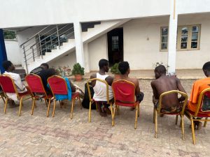 Mr Obono said the arrested suspects include, Ugochukwu Onuorah aged 30 years, Ikemefuna Ossai aged 20 years, Ikenna Orugu aged 27 years, Chibuike Obiefuna aged 19 years, Chinonso Olisa aged 19 years years, Chinedu Okoli aged 21 years, David Ojini aged 25 years and the most notorious of them, one Peter Sunday aged 20 years with a big tattoo inscription of *No peace 4 d Government on his chest.