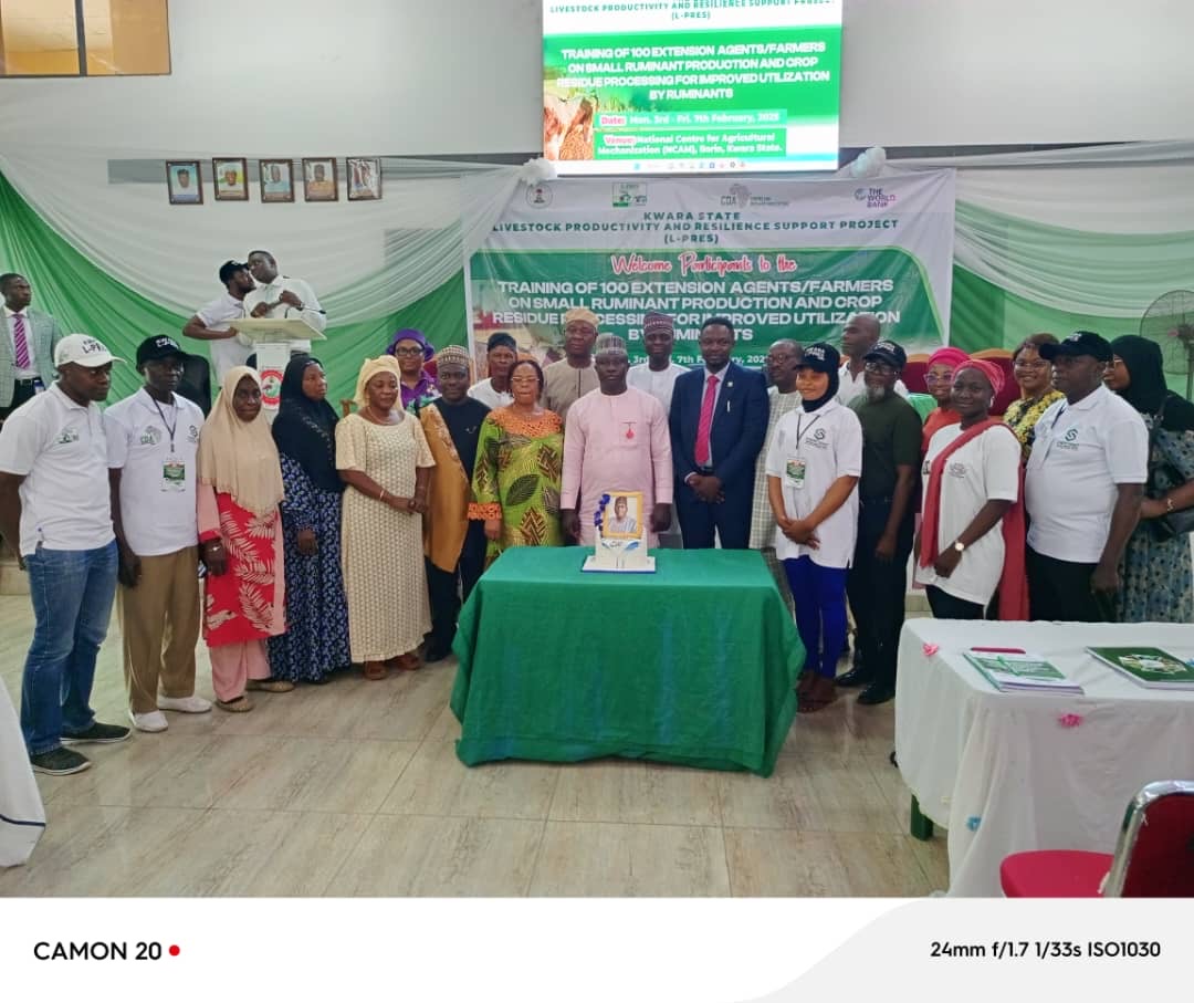 At least 1,000 farmers and extension agents have been trained by Kwara state government on small ruminant production and crop residue processing for improved utilization by ruminants.