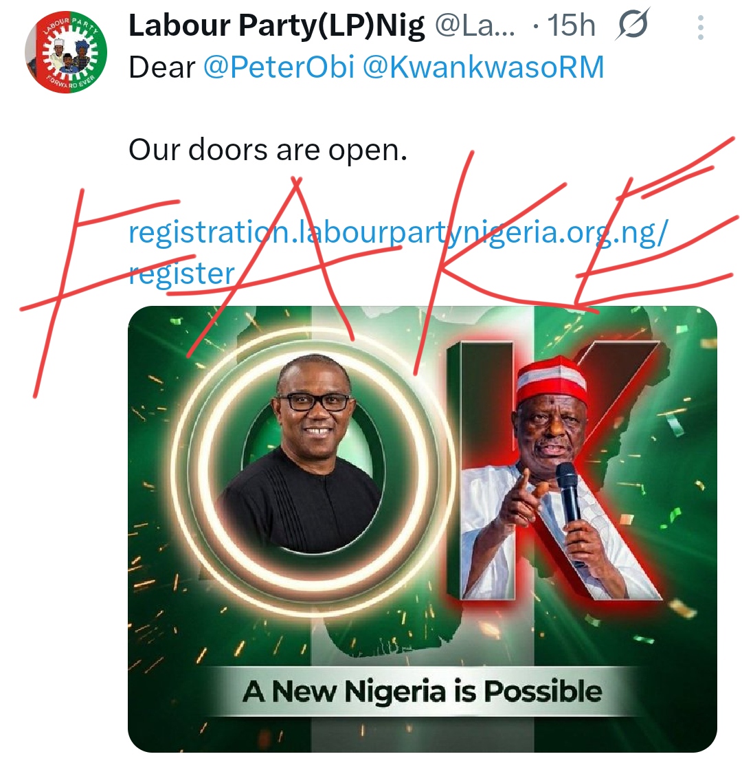 According to the statement, the party attention was drawn to a fraudulent X account using the name LABOUR PARTY (LP) NIG with the handle @LabourpartyNGR_.