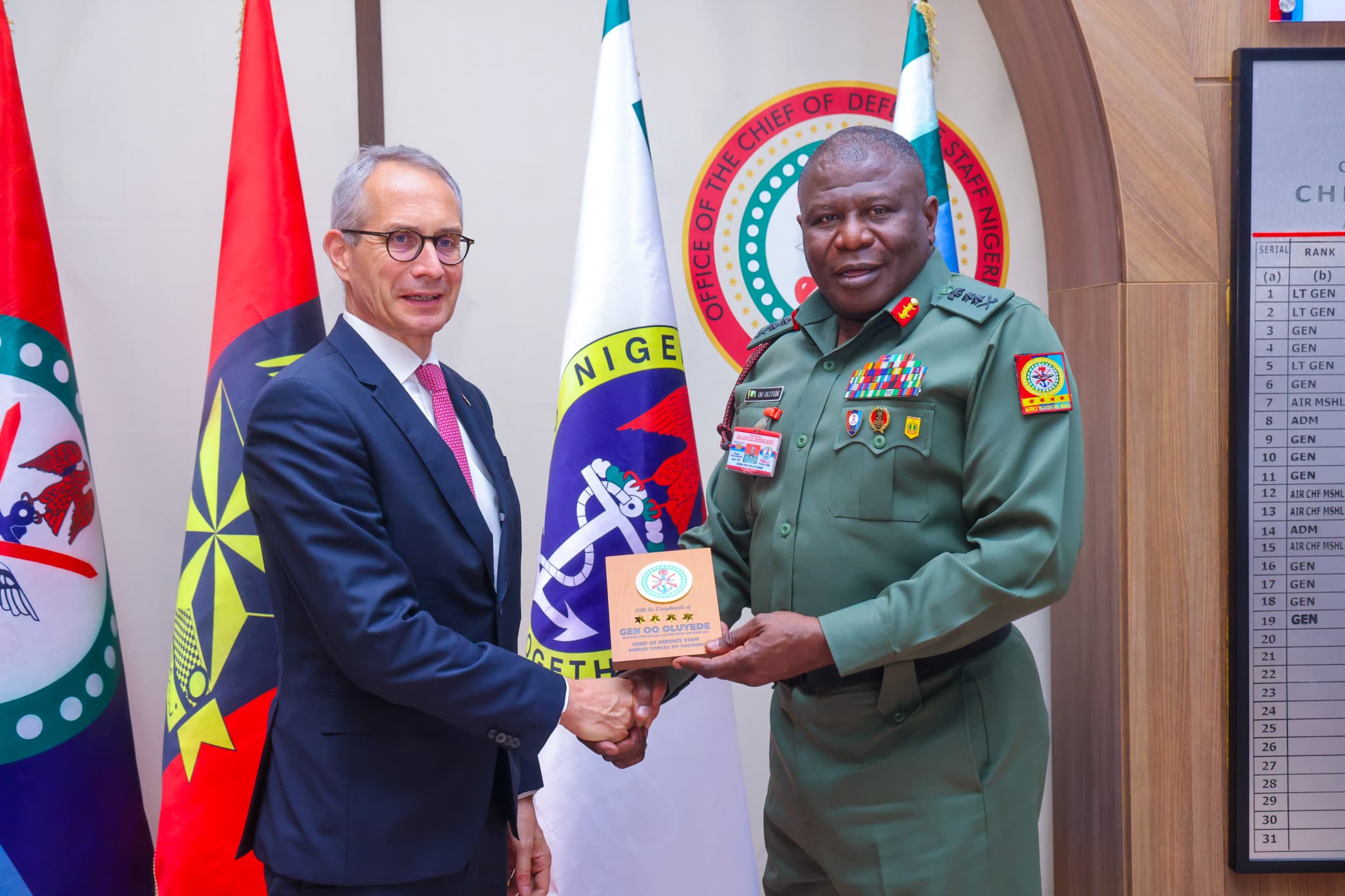 General Oluyede welcomed the Ambassador, appreciating Switzerland’s contributions to non-kinetic security efforts, and stressed that such collaborations complement ongoing military operations.