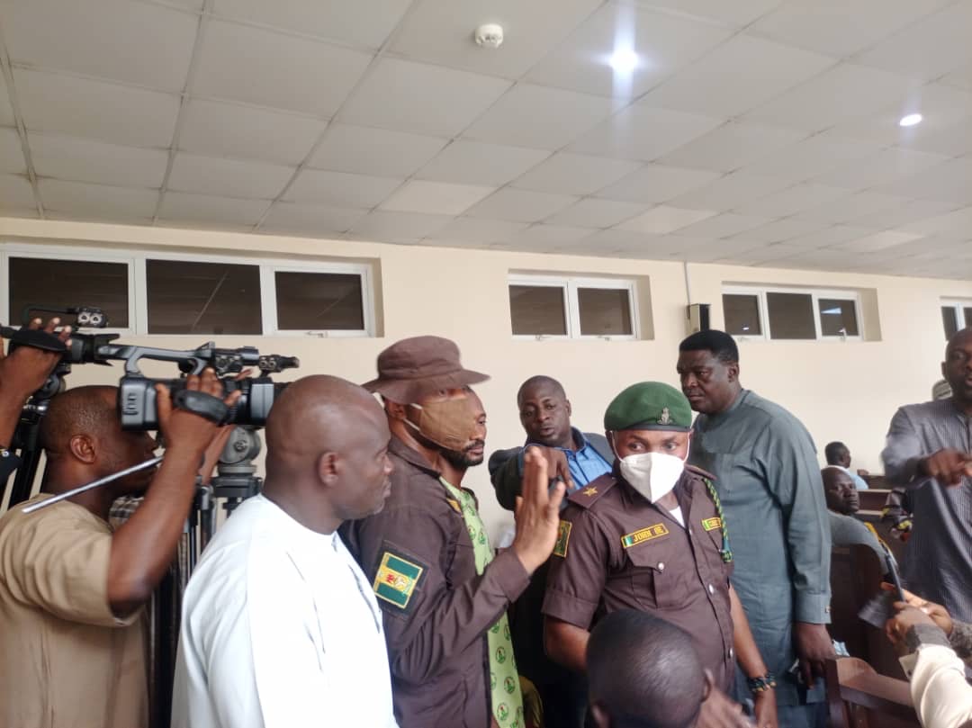 The 32 years old singer arrived the state high court in Lafia in the morning accompanied with personnel of the Nigerian Correctional Service, NCS