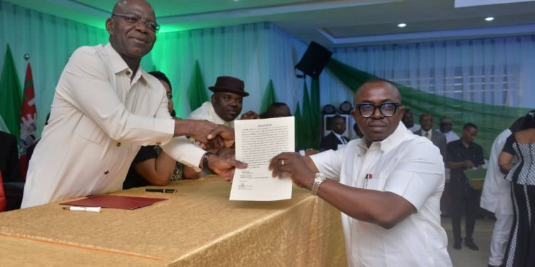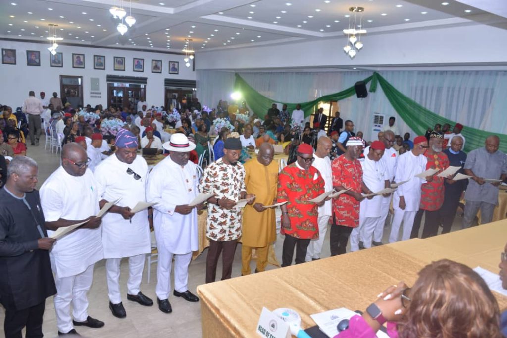Governor Alex Otti of Abia state has inaugurated the newly elected 17 Local Government Area Council Chairmen and Deputies without the ruling party cliching any of the local governments in the state.